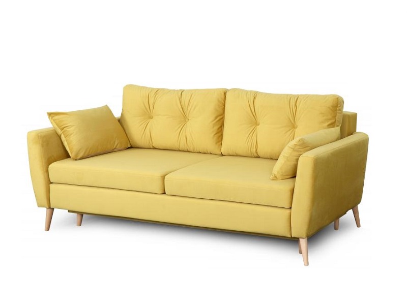 Элементы декора: Декоративные опоры из натуральной древесины (береза), декоративная отстрочка, декоративные утяжки с пуговицами на подушках