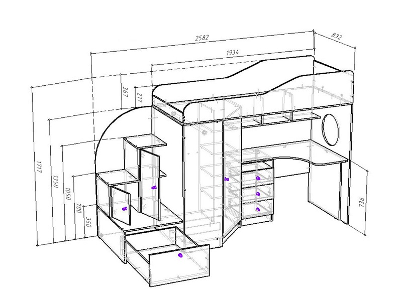 - Кровать чердак ШхВхГ 1934х1717х832 мм